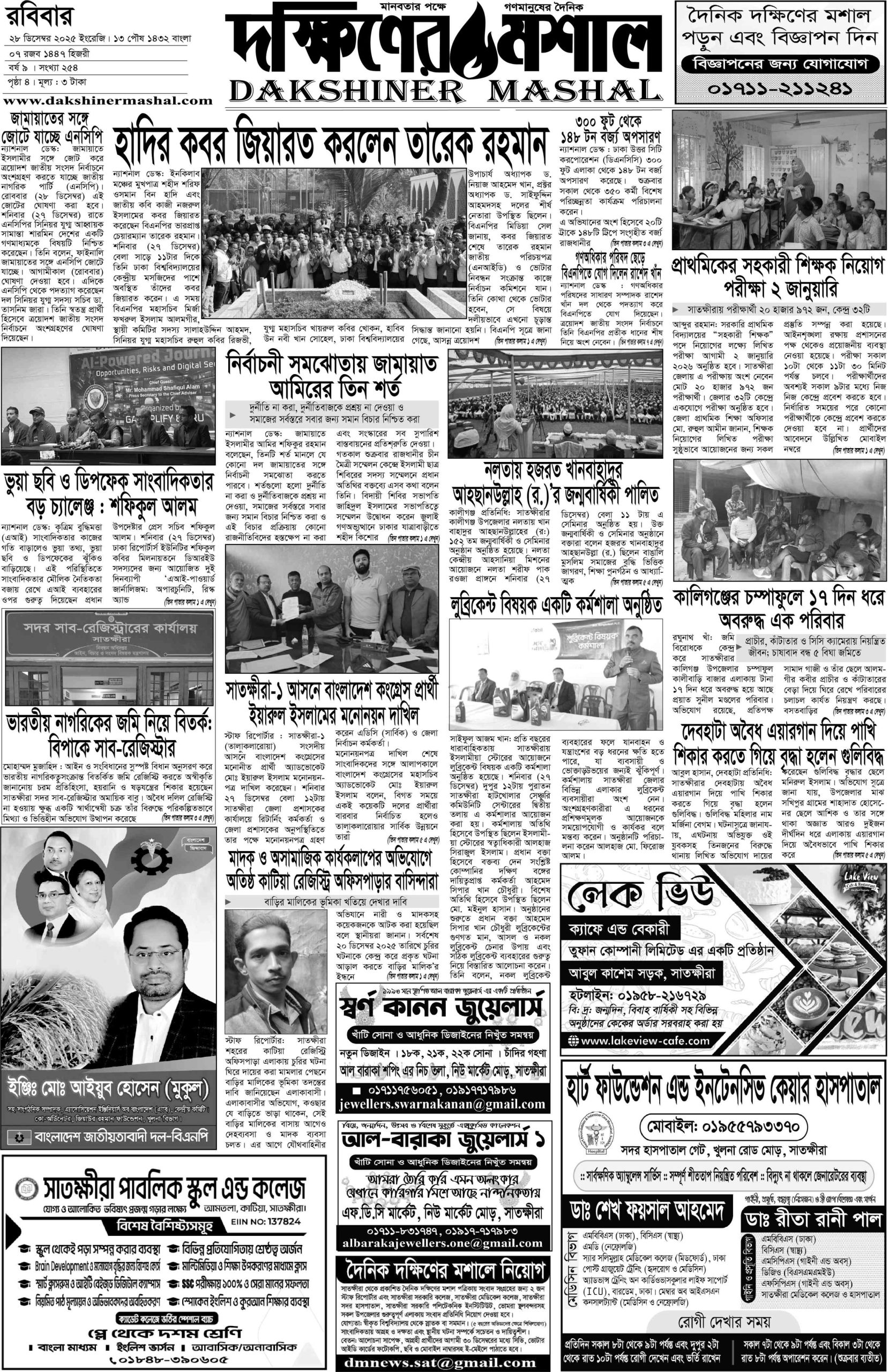 © ২০২৫ সর্বস্বত্ব সংরক্ষিত | দক্ষিণের মশাল © প্রগতি ভবন, পলাশপোল, সাতক্ষীরা